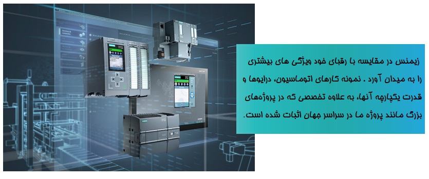 راهکار: فناوری پیشرفته اتوماسیون، شبکه، درایو و قدرت، به علاوه تخصص، به صورت انحصاری از زیمنس، با استفاده از تیا پورتال برای برنامهنویسی.
