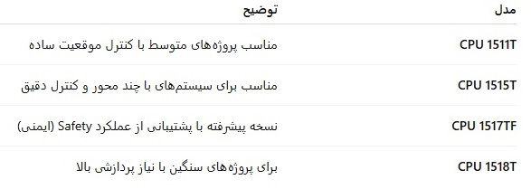 برخی از مدلهای پرکاربرد S7-1500T شامل موارد زیر هستند: